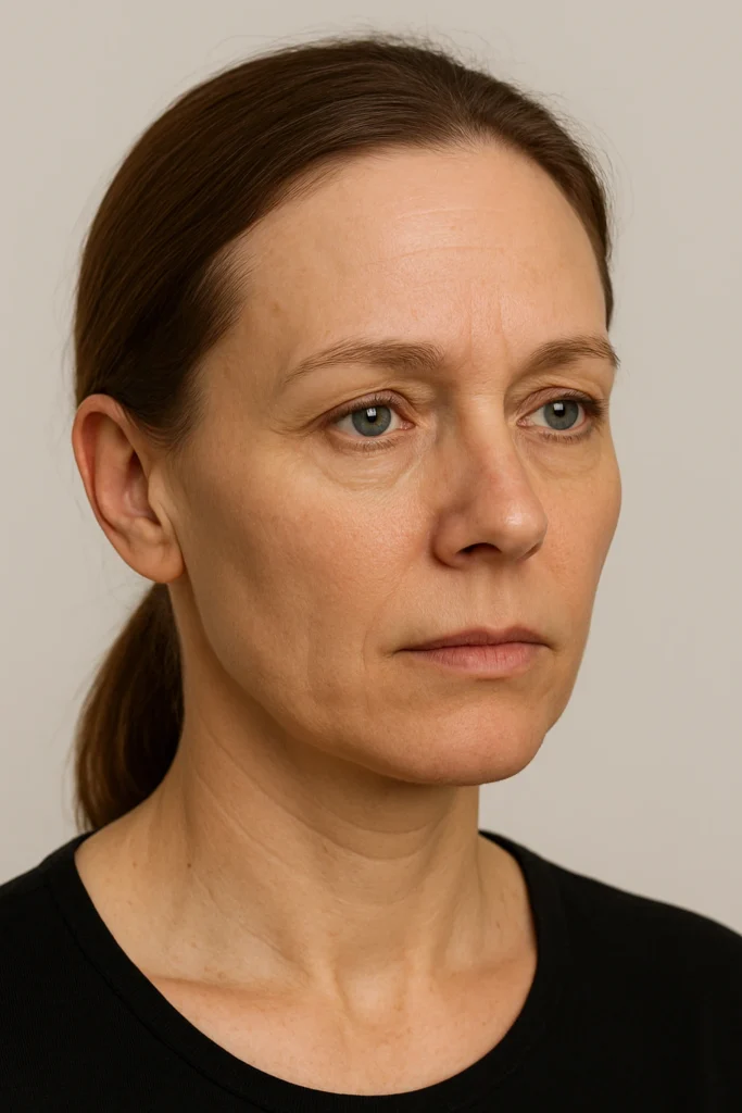 - Tab af fedtvæv og volumen: Med alderen svinder de naturlige fedtpuder, som giver ansigtet runding og blødhed.